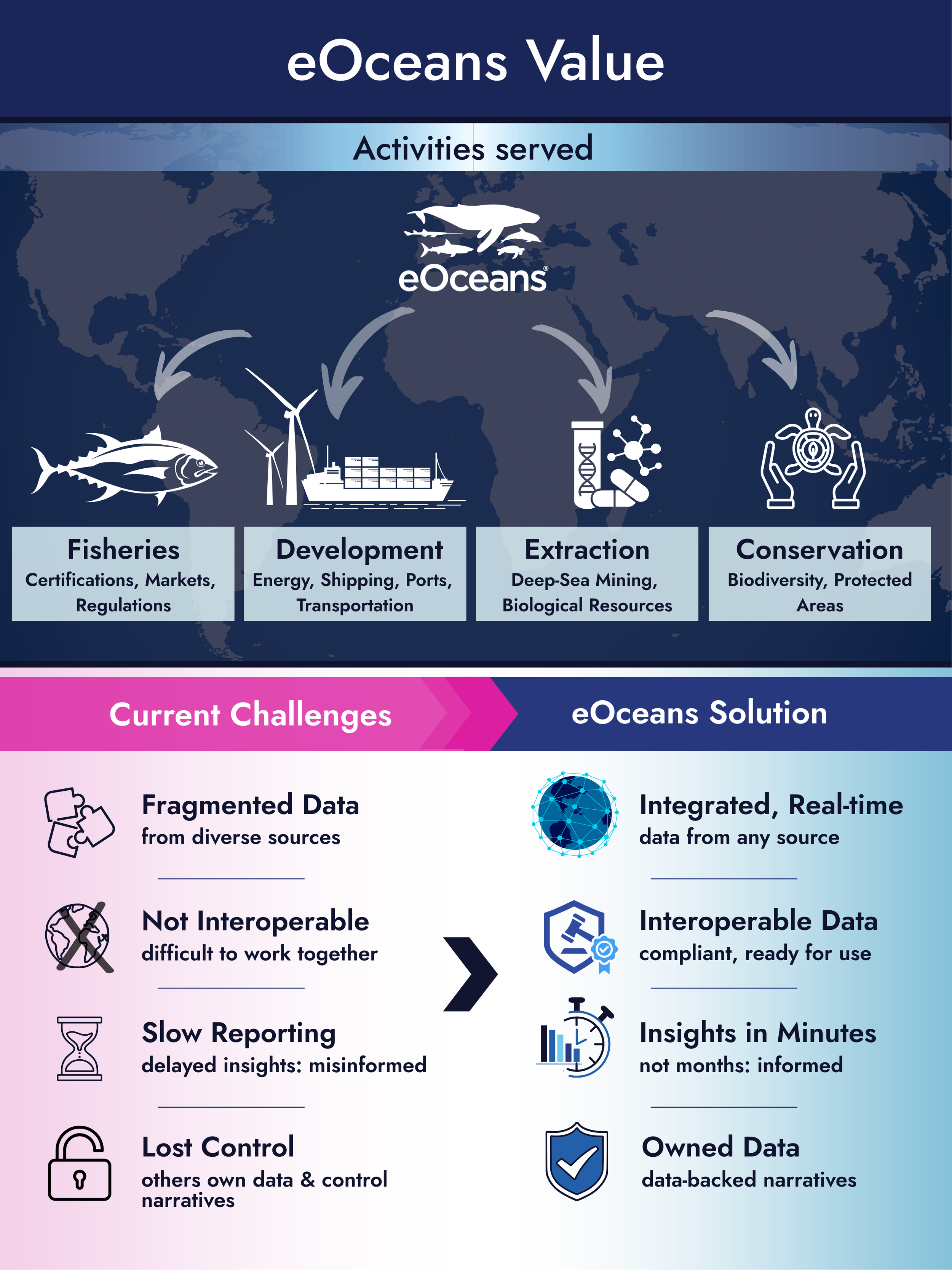 Built for multi-asset, multi-stakeholder environments, eOceans® enables secure, agreement-based data sharing across projects, departments, organizations, and sectors — while preserving ownership, governance, and control.