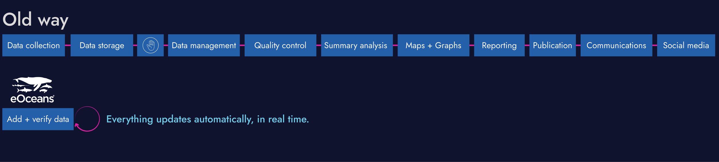 Built by PhD scientists with expertise in socio-ecological monitoring, environmental science, and policy, eOceans empowers your team to do more—amplifying impact and capacity by handling cumbersome data tasks so your experts can focus on work that matters.